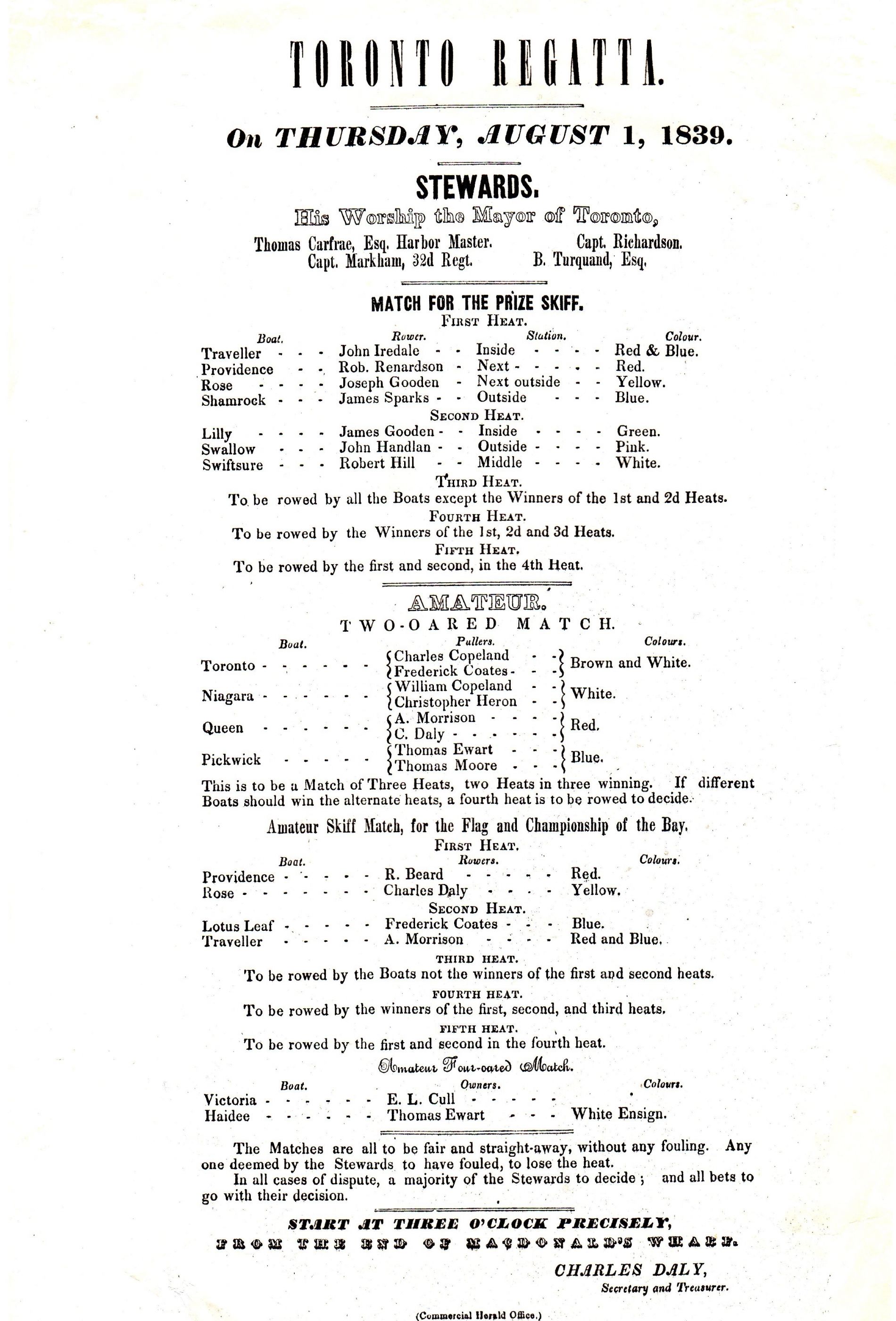 ten miles square at Toronto, and two to four Miles, I do not recollect which, on each side of the intended road or carrying place leading to Lake Le Clai (Lake Simcoe), then ten miles square at the Lake and the same square at the end of the water communication emptying into Lake Huron this deed was left with Mr. Collins, whose Clerk drew it up to have the courses inserted with survey of these Tracts were completed and was never returned to my office…