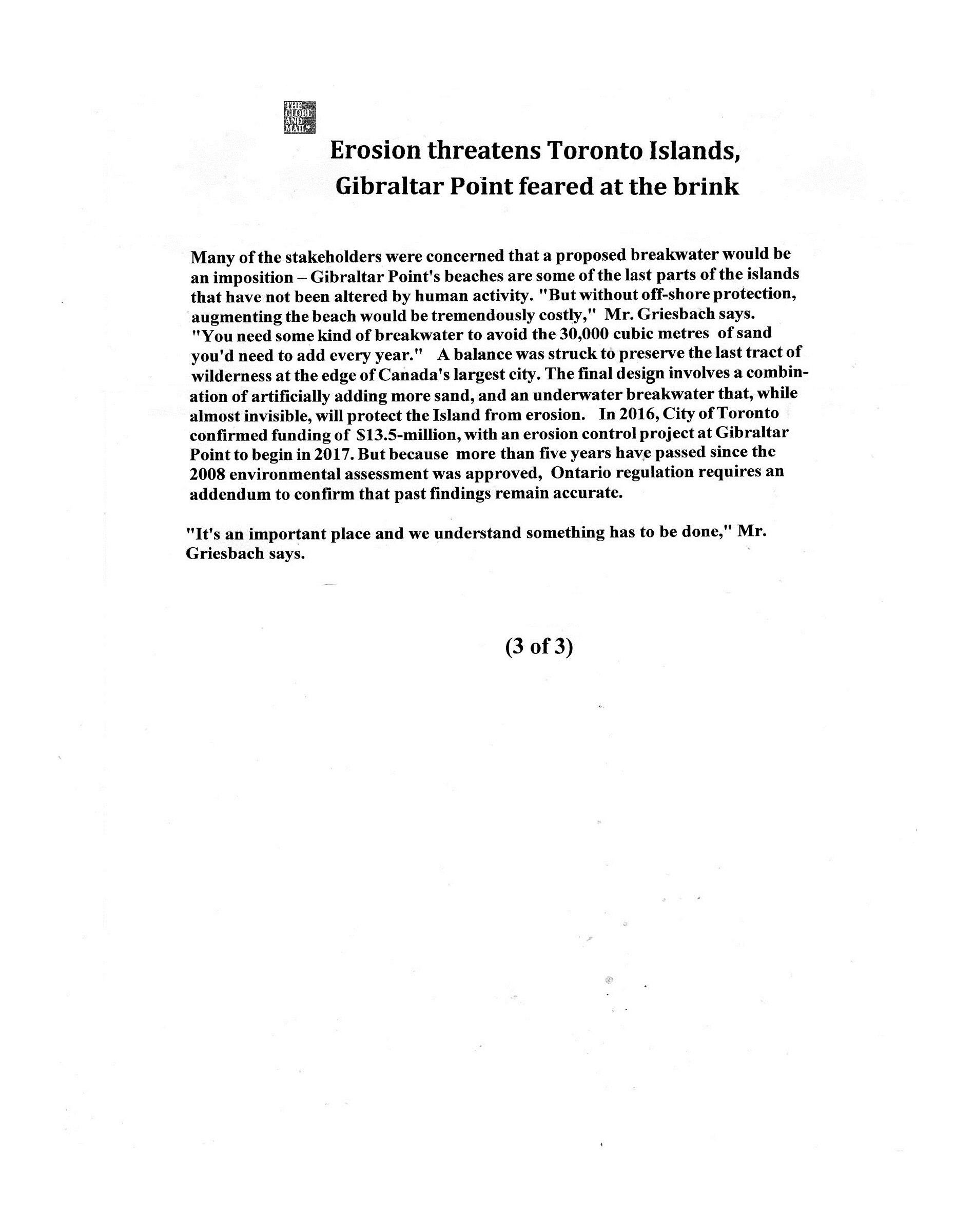 “I have to advise you that it is the intention of the department to dis- continue the light at Gibraltar Point, on or about the 1st of July, although it may be later when the change is carried out, and I have therefore to inform you that your services will not be required by the department after the 1st of September, 1907.”